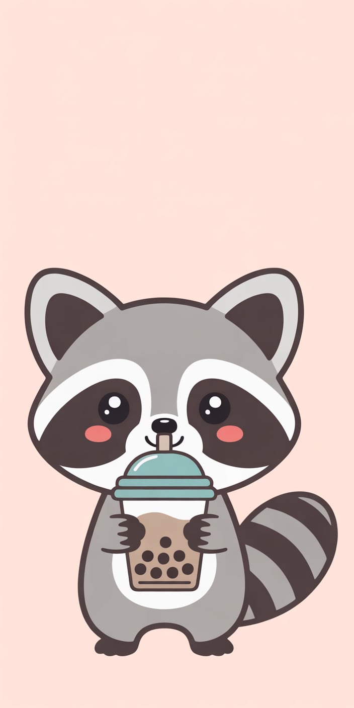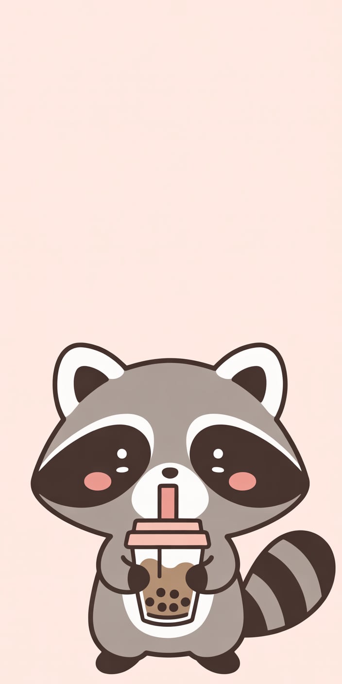 A super-cute cartoon Cute Raccoon holds a cup of bubble tea against a soft pastel pink background. The blushing cheeks and round eyes make it perfect for Pet Raccoon fans who love kawaii-style designs. This playful illustration is ideal for adding cheerful vibes to your iPhone or Samsung screen.
