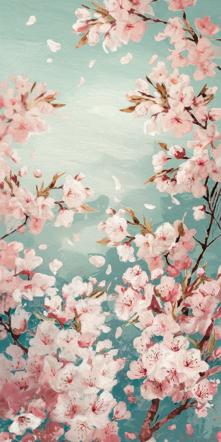 Delicate cherry blossoms in soft pink hues set against a serene blue sky. The petals appear to float through the air, creating a peaceful and dreamy vibe. This scenic background wallpaper is perfect for iPhone and Samsung users who love natural and calming designs. Bring a touch of springtime to your phone with this elegant floral design.