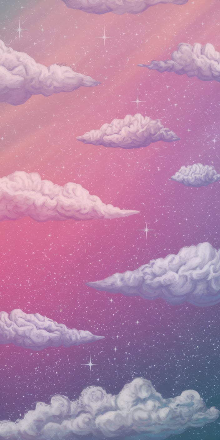Give your phone a magical glow with this soft pink cloud wallpaper. The twinkling stars and delicate pink hues create a peaceful and dreamy vibe. Ideal for anyone who loves celestial and relaxing designs, this soft pink lockscreen aesthetic is the perfect backdrop for your phone.