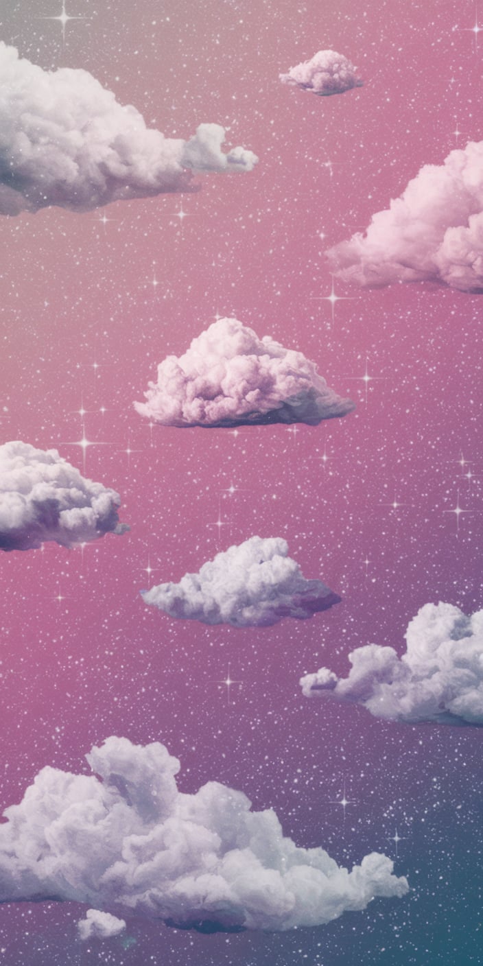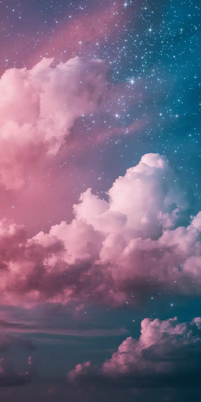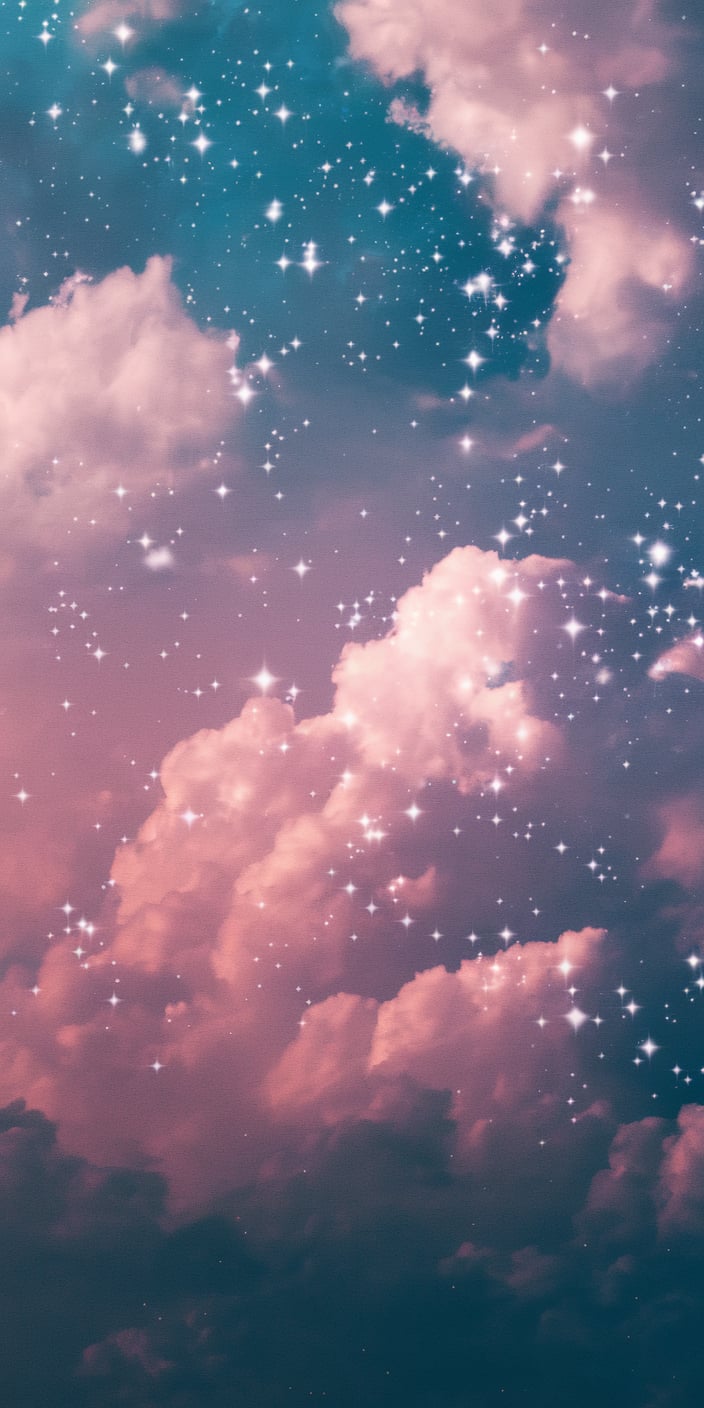 A dreamy night sky with soft pink and purple clouds floating among sparkling stars. The pastel hues and glittering details create a peaceful and magical vibe. This soft pink lockscreen aesthetic is ideal for iPhone and Samsung users who want to bring a touch of the night sky to their phone. Perfect for creating a calming and celestial atmosphere.