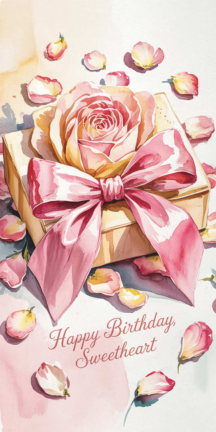 Celebrate in style with this romantic wallpaper featuring a blooming rose gift box wrapped in a pink satin bow. The scattered petals and soft watercolor texture add a dreamy, coquette vibe. If you’re into Floral Wallpaper Iphone or need a cute birthday screen, this one’s full of heart.