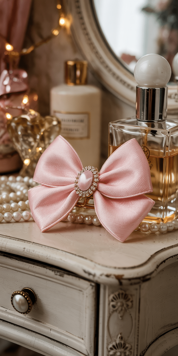 Turn your phone into a vintage dream with this gorgeous vanity shot featuring a jewel-topped pink bow. Perfect for lovers of Coquette Wallpaper and old-world glamour, this design is soft, romantic, and endlessly elegant. Surround yourself with a little sparkle and sweet pink magic every time you pick up your phone!