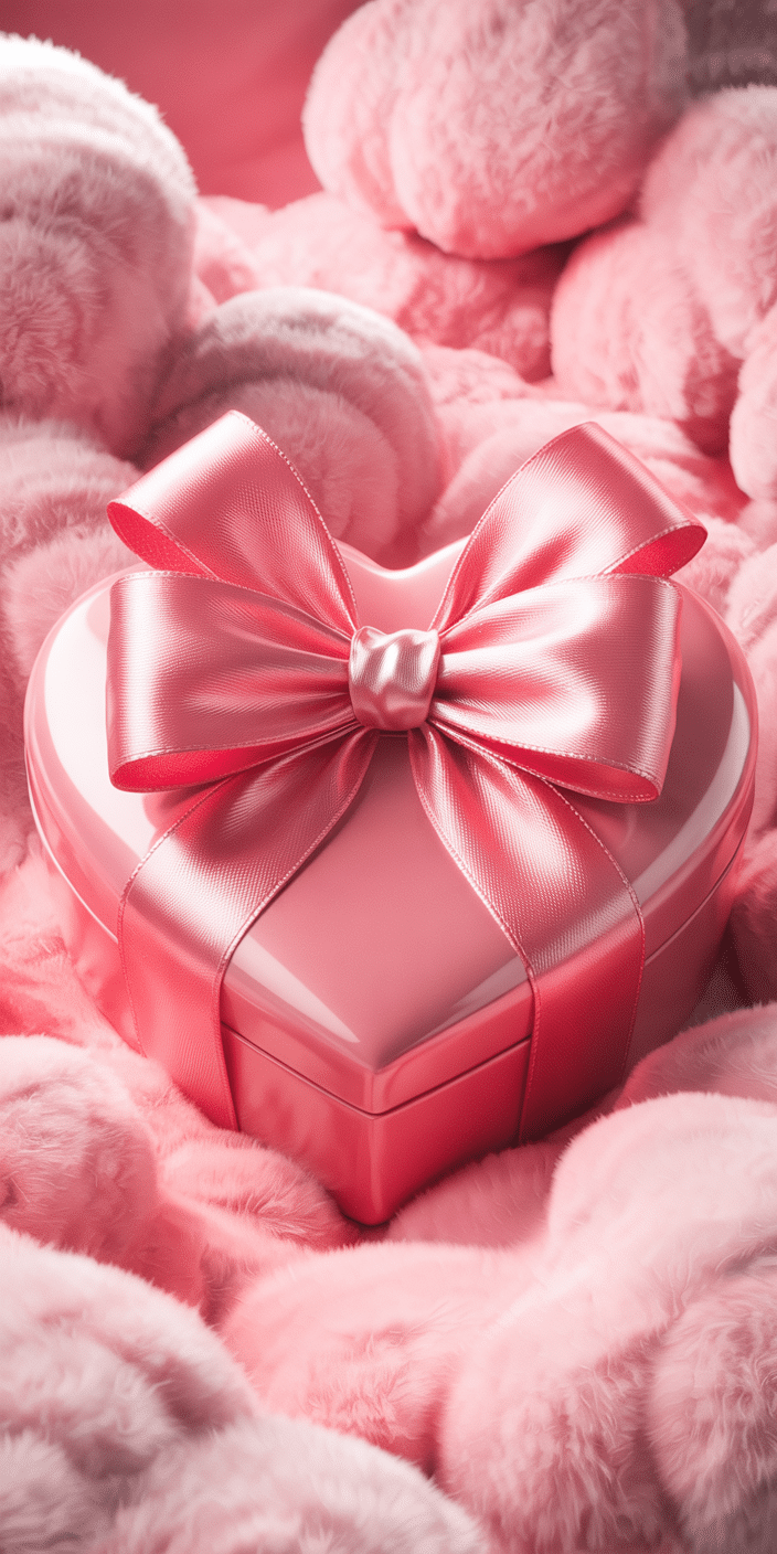 Fluffy pink fur and a glossy heart box wrapped with satin ribbon—this wallpaper is a cozy dream! Perfect for fans of Cute Home Screen Wallpaper and all things soft and pink, this look is a must for your phone. It’s the ultimate mix of sweet glam and girly charm. Make your home screen a plush paradise!