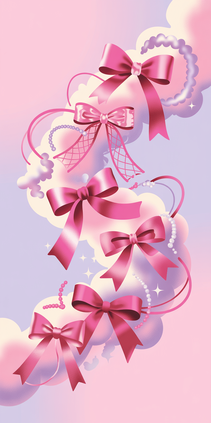 Float away with this cute collection of pink bows and pearl accents on a soft cloudscape background. It’s bubbly, fun, and super sweet—perfect for anyone obsessed with Pink Wallpaper Kawaii or that Cute Home Screen Wallpaper look. It’s like wearing your favorite charm bracelet on your phone. Add this burst of joy to your screen!