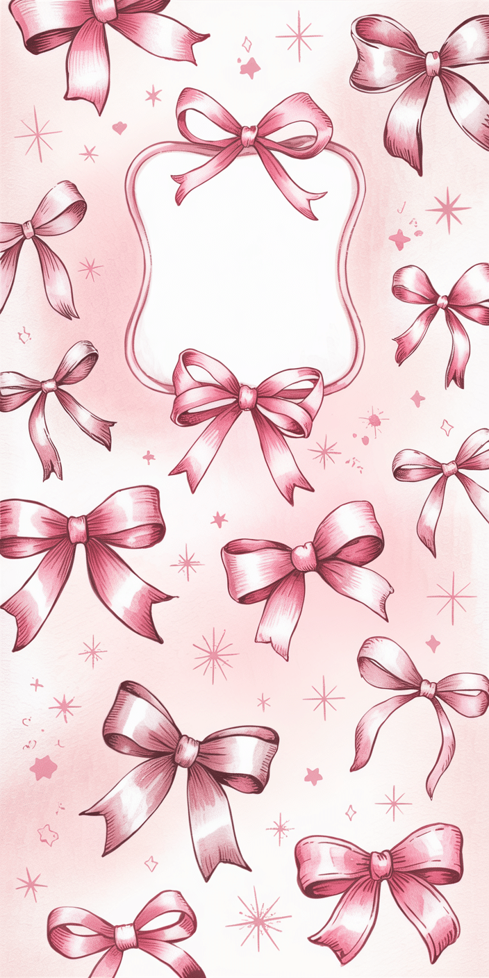 This wallpaper is a mix of cute and creative—filled with sketched pink bows, sparkles, and a blank frame to personalize. Whether you love using quotes or organizing your home screen, this is made for aesthetic planning. Ideal for Pink Wallpaper Backgrounds lovers.