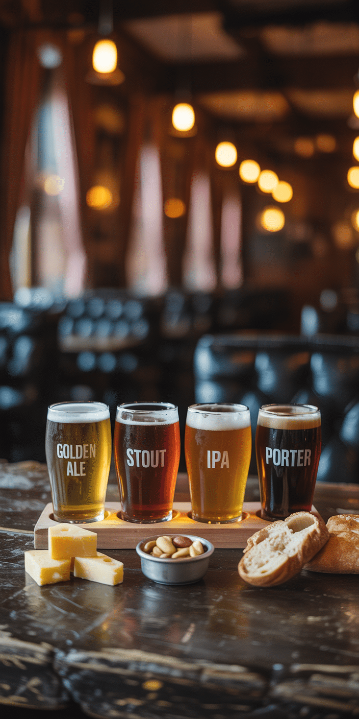 Pair your wallpaper with flavor and class! This beautiful beer and cheese flight setup is rich in detail and perfect for lovers of craft beer culture. From the handwritten labels to the warm lights and tasty pairings, it creates a refined pub experience you can carry with you.