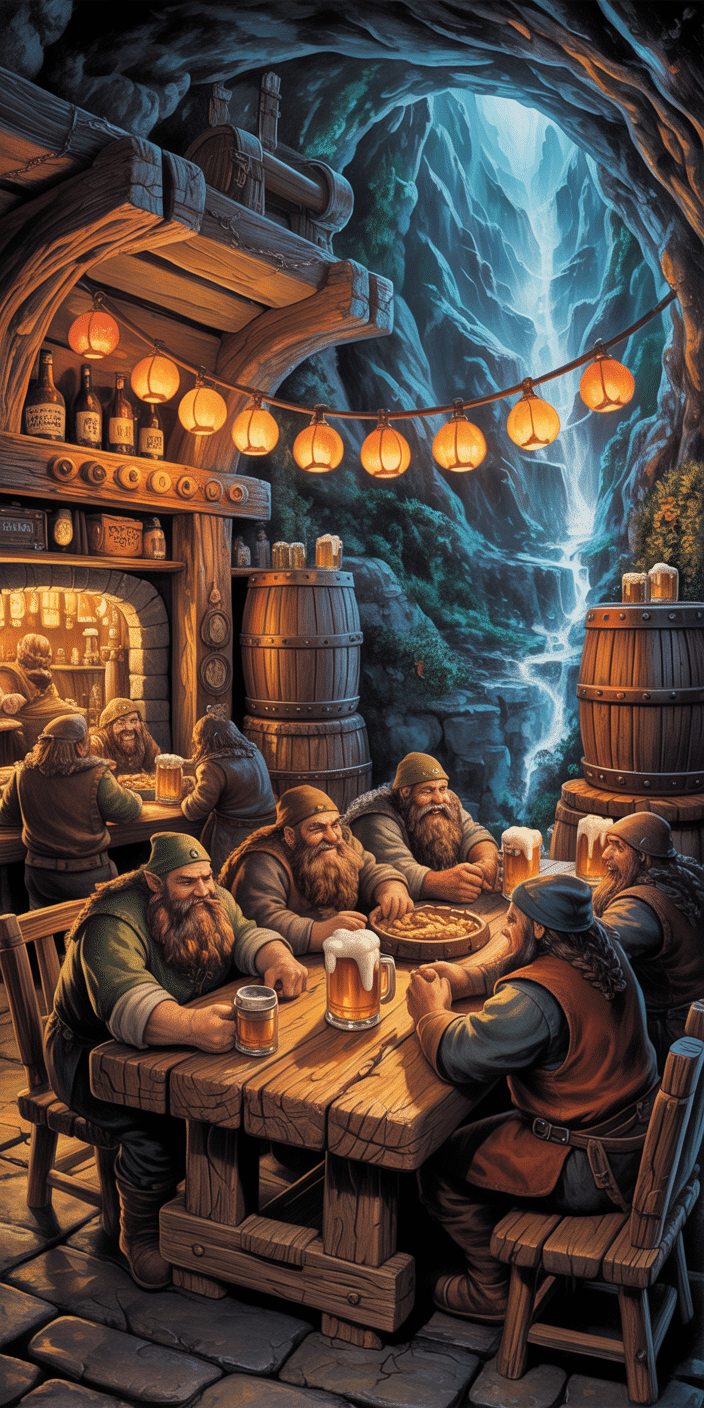 Take your screen on a quest with this magical dwarf tavern wallpaper! With glowing lights, hearty mugs, and a stunning waterfall backdrop, it’s the perfect blend of comfort and adventure. For fantasy fans who love a good pint, this scene is full of life, laughter, and legendary vibes.