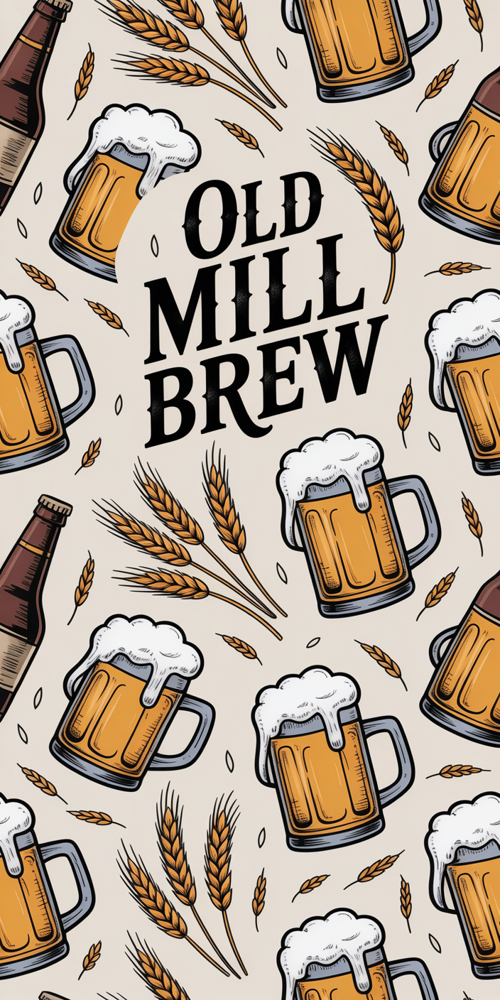 Bring a classic brewery vibe to your phone with this cozy “Old Mill Brew” pattern. With foamy mugs and golden wheat, it’s a tribute to simpler times and delicious craft brews. Ideal for anyone who loves a vintage pub style with heart.