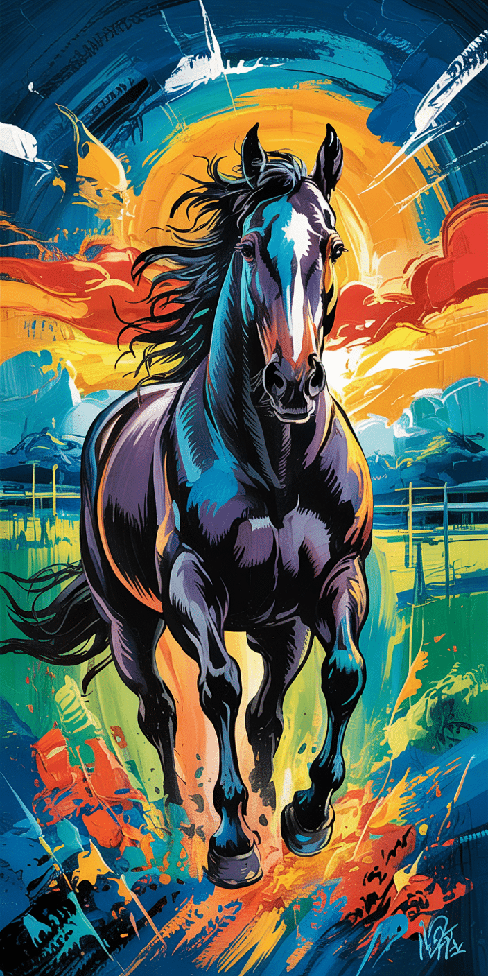 Bring bold energy to your phone with this stunningly vibrant galloping horse wallpaper. The expressive brushstrokes and glowing sunset colors give it a unique, artsy feel that’s perfect for lovers of Horse Wall Art or anyone looking to stand out. This horse’s forward momentum adds drama and flair to your screen. It’s not just a background—it’s a statement.