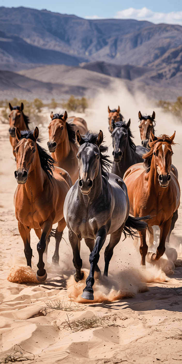 Feel the power and energy of this herd charging straight through the desert dust. With muscles tensed and manes flying, this is the ultimate action shot for horse lovers. Whether you’re into Horse Wallpaper or wild, untamed scenes, this one delivers. Let your screen feel alive with strength and speed.