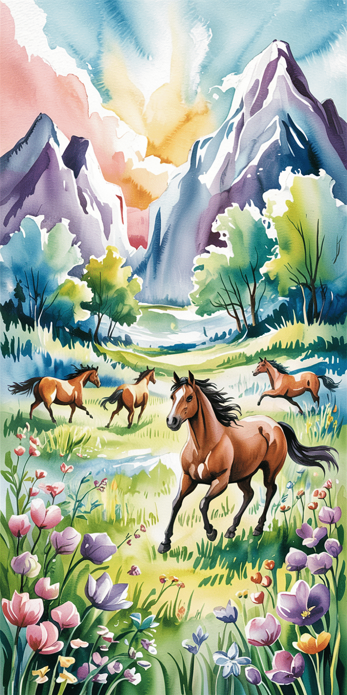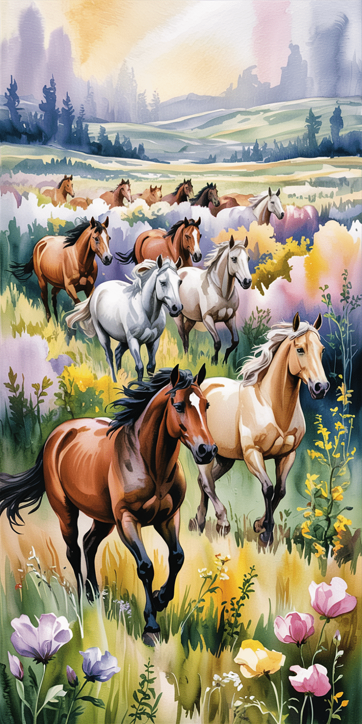 This joyful watercolor herd scene brings movement and magic to your phone. A field full of wildflowers and horses in all colors makes this wallpaper feel alive with energy. If you love Different Horse Breeds and want your screen to pop with color, this one’s for you. A beautiful blend of art, nature, and motion.
