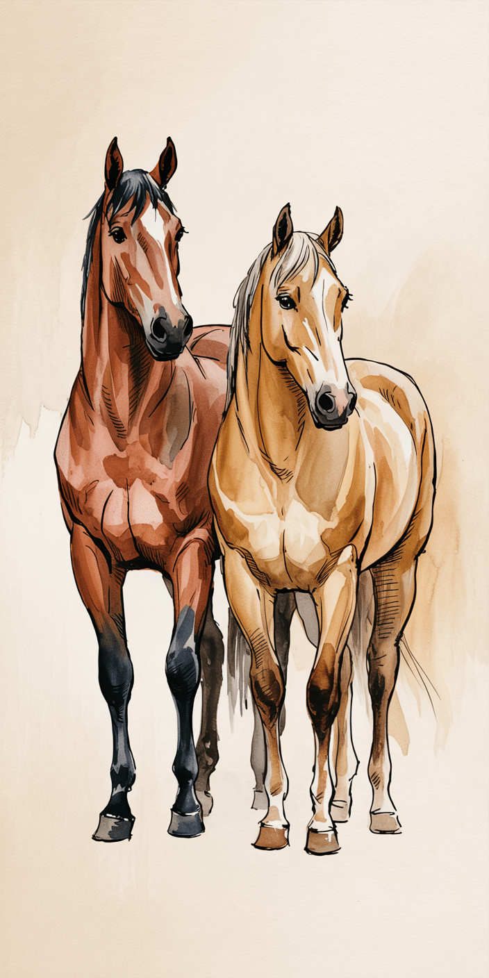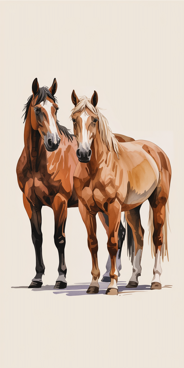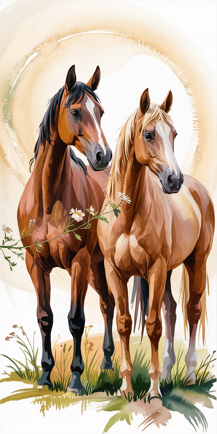 This beautiful painted duo radiates calm friendship and golden warmth. With one chestnut and one light blonde horse, it’s a perfect pick for those who love pairs and peacefulness. If you’re all about artistic charm and Cute Horse Wallpapers, this one’s a heart-warmer. Perfect for dreamy phone vibes.