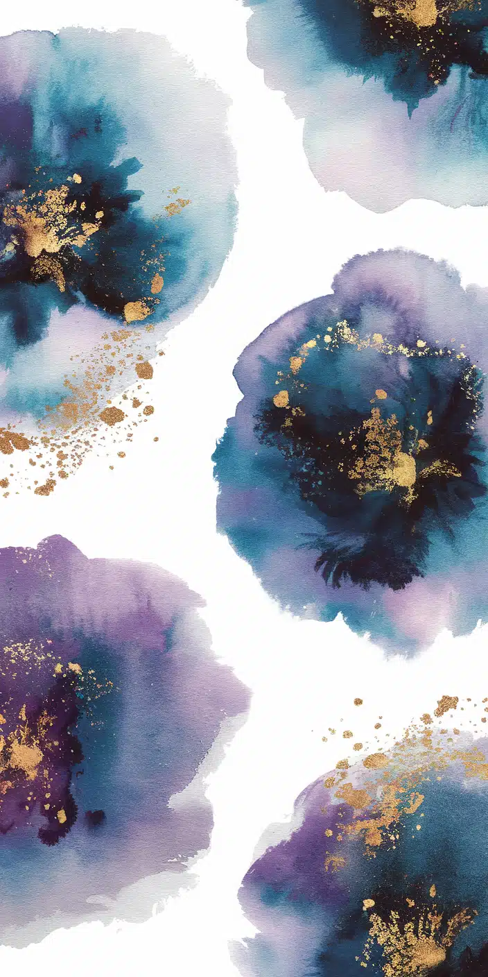 Add a touch of elegance to your phone with this blue and purple watercolor wallpaper. The gold accents create a luxurious and artistic vibe, perfect for a stylish home screen.