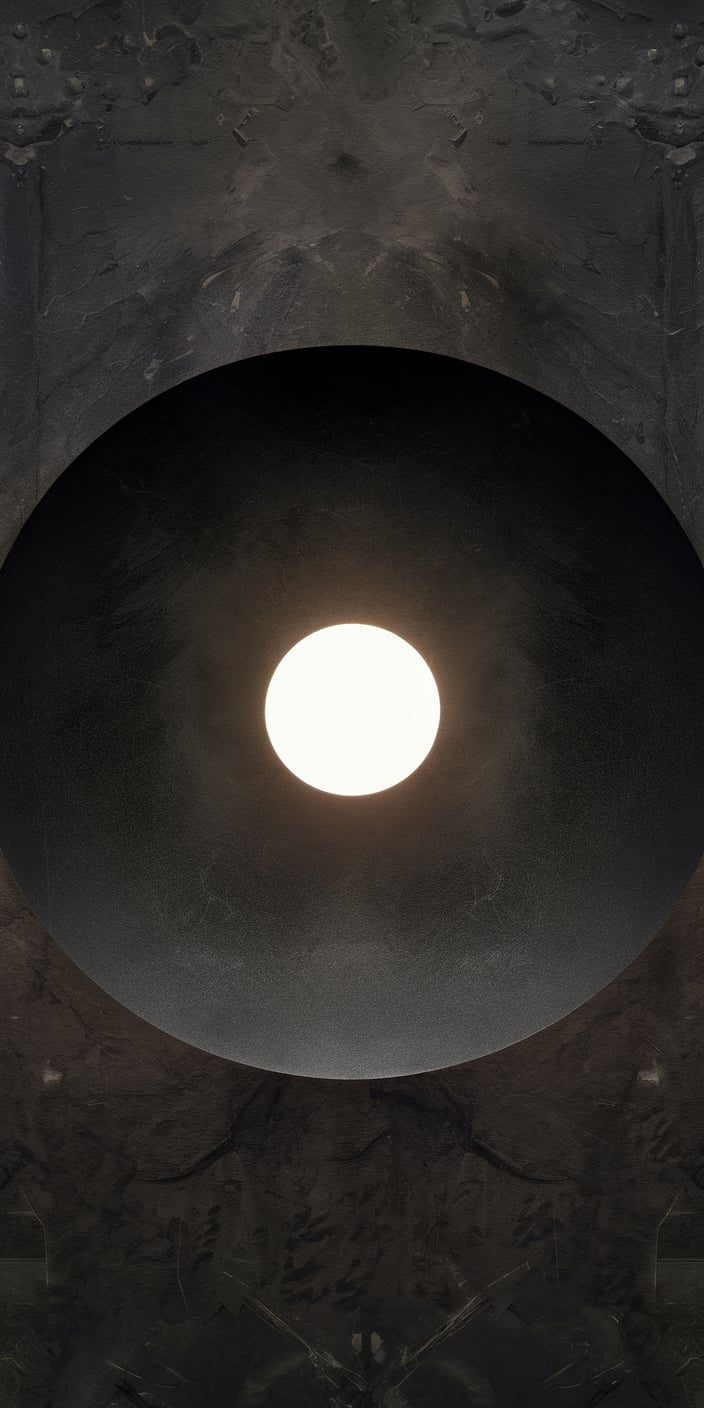 Upgrade your phone with this sleek symmetrical light wallpaper. The glowing circle and dark texture create a modern and balanced look. Perfect for a clean and mysterious vibe!