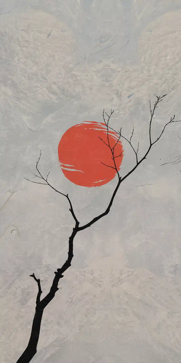 Bring a touch of Japanese-inspired beauty to your phone with this red sun and bare tree branch design. The soft gray background and bold red circle create a calming yet striking aesthetic.