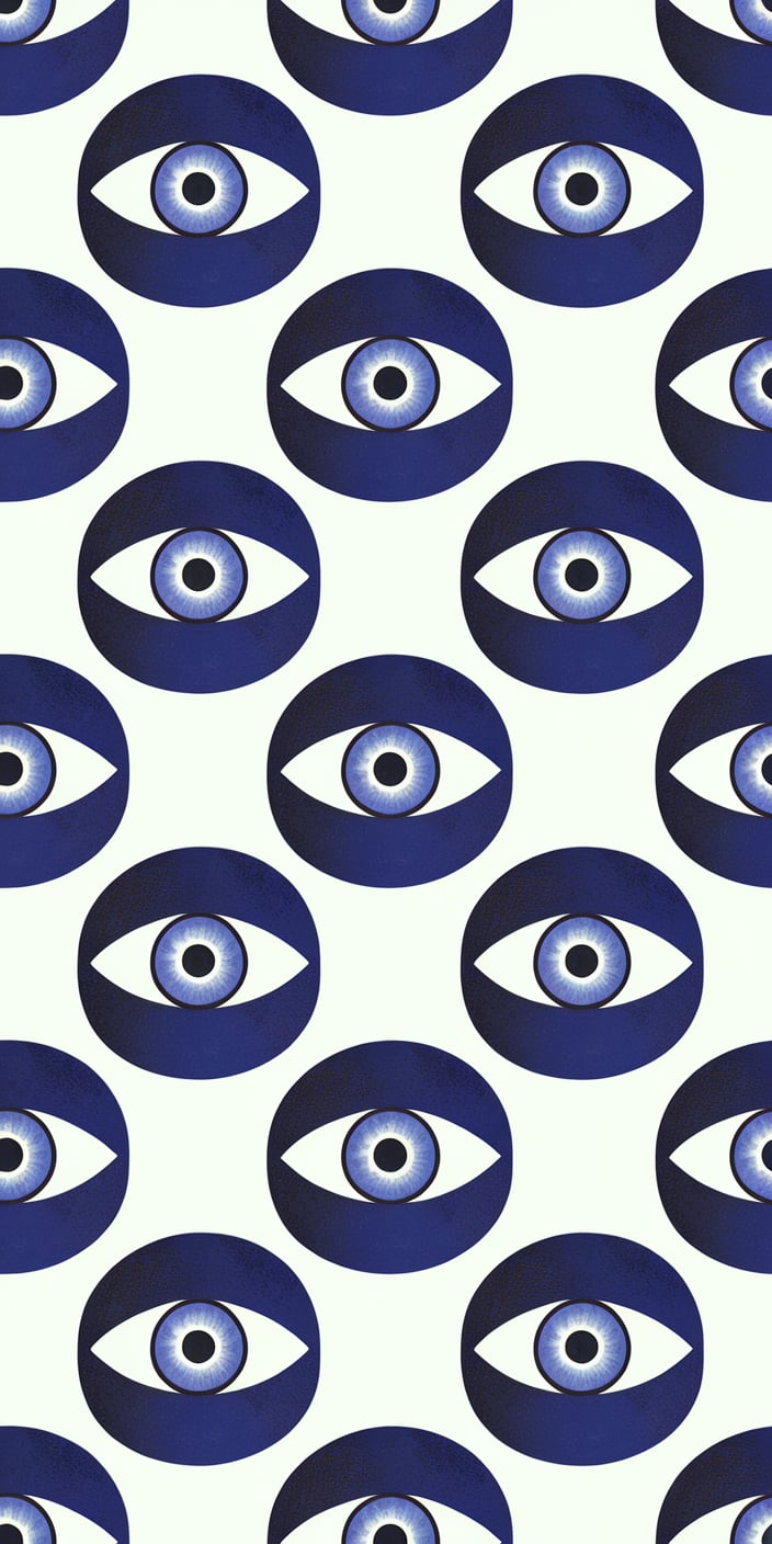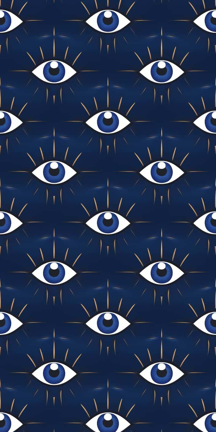 This minimalist wallpaper features a repeating pattern of dark blue Evil Eyes against a light background. The clean design and subtle contrast create a calming and protective feel. Perfect for a sleek and meaningful phone upgrade.