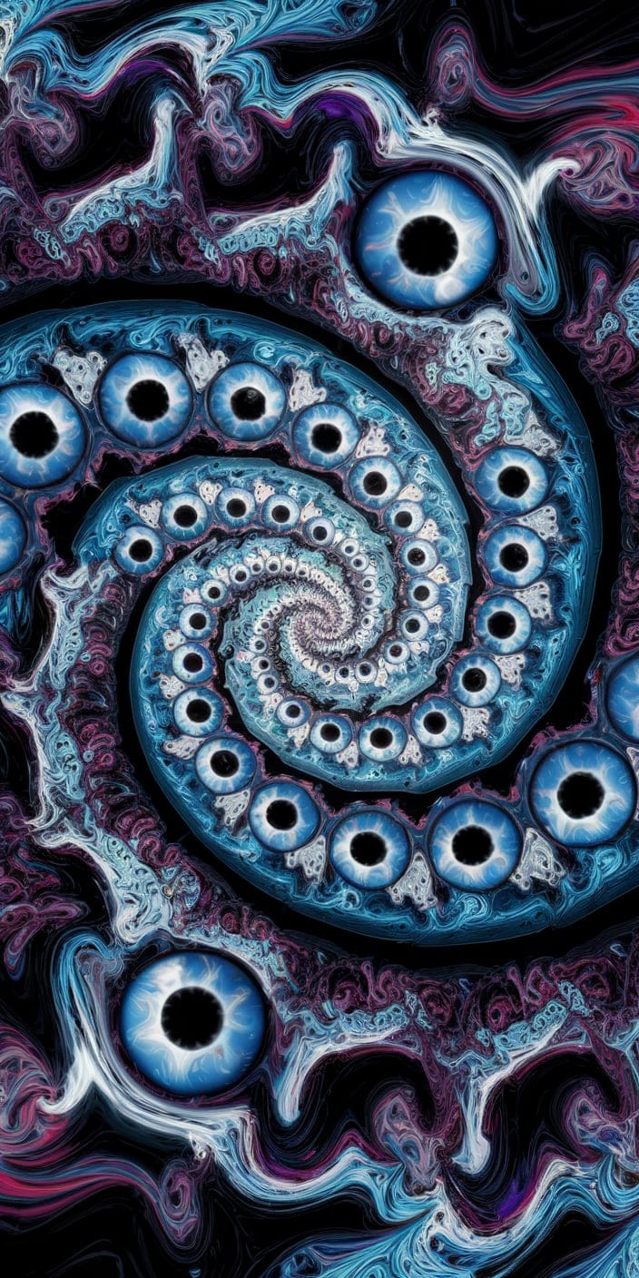 This stunning wallpaper features a hypnotic spiral of blue eyes, blending deep blues, purples, and whites in a swirling pattern. The mesmerizing design creates a sense of mystery and spiritual depth. Perfect for anyone looking to add a mystical vibe to their phone.